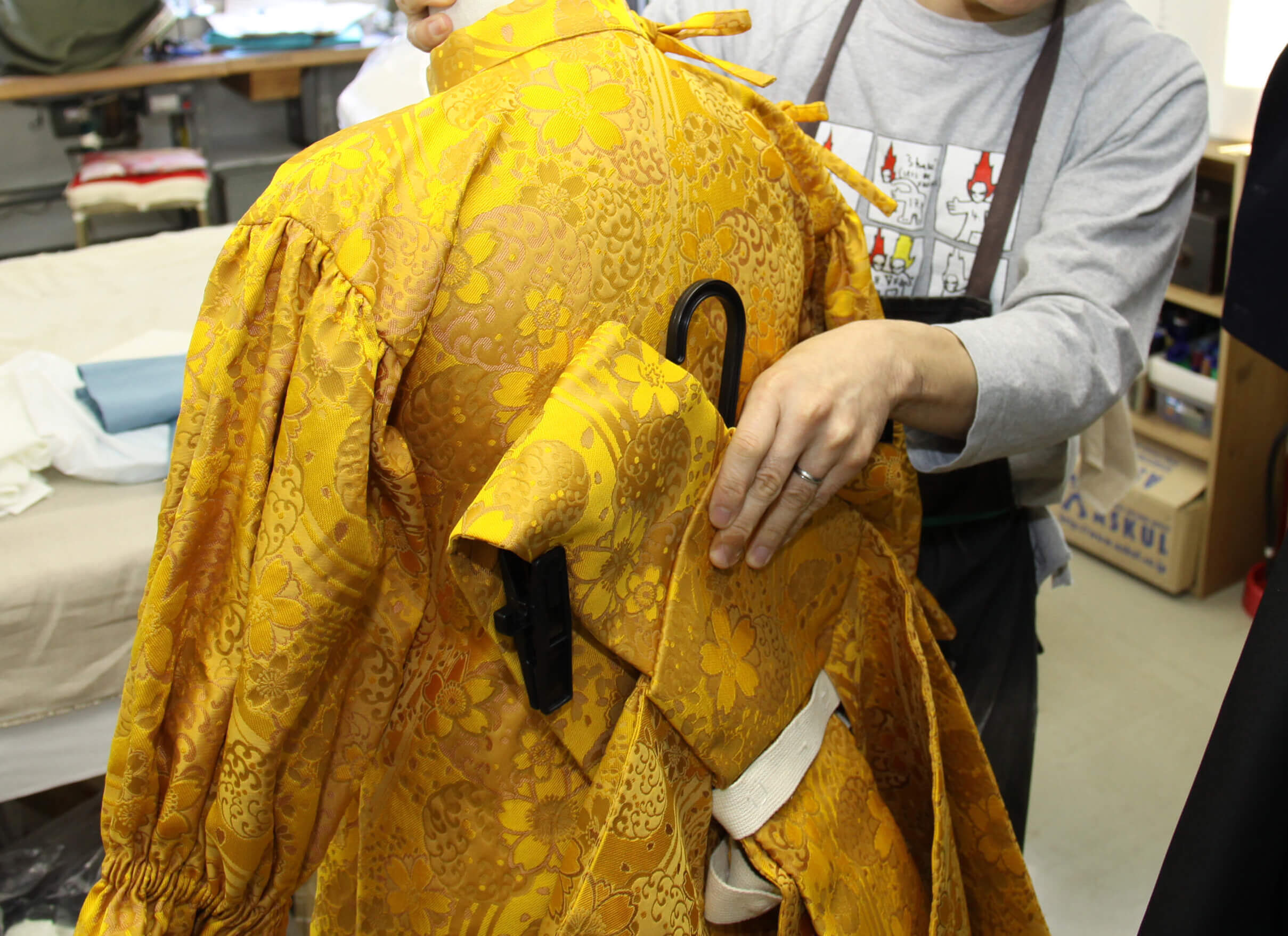 オリジナルデザインの衣裳を新たに作ることは、私たちの大きな柱。テーマパークの衣裳を例に製作の流れを説明します。テーマパークの衣裳は、非日常を演出できるセンスと激しい動きに耐えられる技術力が求められます。舞台演劇でも、プランナーによるデザイン画をもとに衣裳を製作することが多くあります。